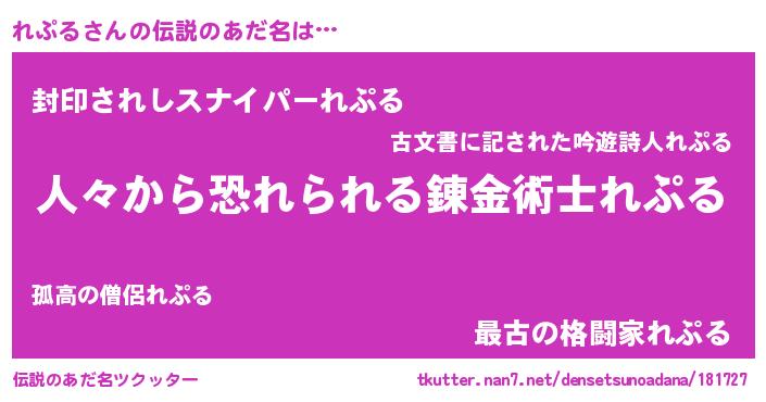 | ヒーロー風カッコイイあだ名 | 『仮面レプダー』『天空の使者れぷる』 |
