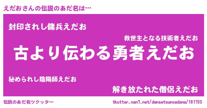| ヘコむあだ名 | 『えだお(遠い目)』『えだにゅー』 |