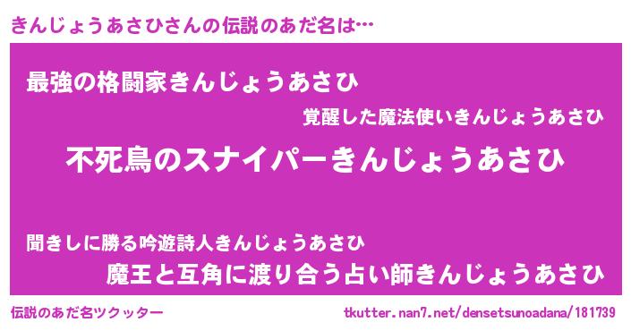 | 胡散臭い通販商品みたいなあだ名 | 『モテモテ間違いなし霊験あらたかなお札…その名も「きんじょうあさひ」』 |