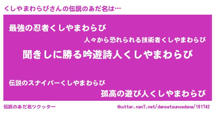 | 意味不明あだ名 | 『永久保存くしやまわらび』 |