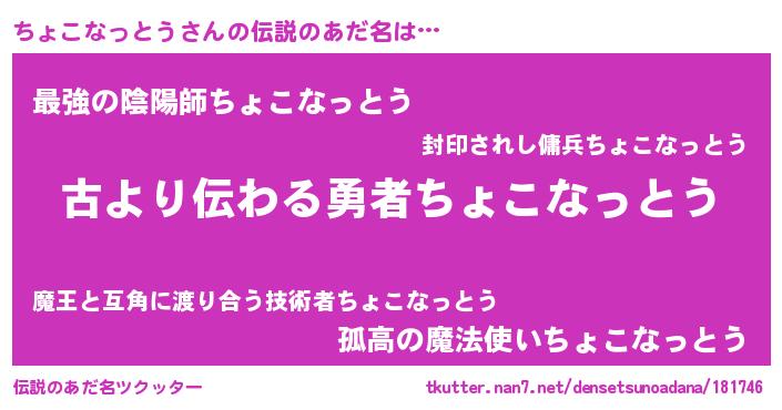 | 意味不明あだ名 | 『住所不定無職ちょこなっとう(85歳)』 |