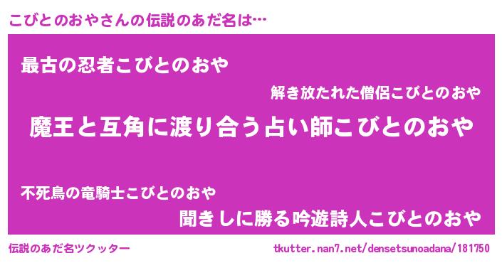 | ヒーロー風カッコイイあだ名 | 『サイバー戦士コビトノオヤ』 |