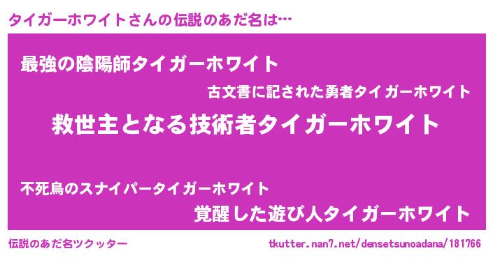 | ヒーロー風カッコイイあだ名 | 『慈愛の使者タイガーホワイト』 |