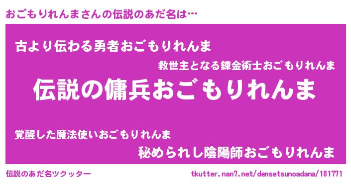 | ヒーロー風カッコイイあだ名 | 『スーパーオゴモリレンマ』 |