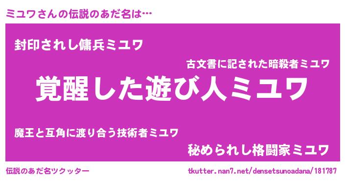 | 意味不明あだ名 | 『とにかく怪しいミユワ』『自称ミユワ』 |
