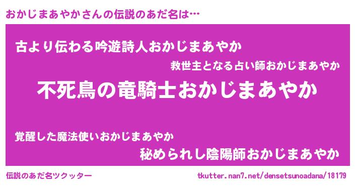 | 意味不明あだ名 | 『住所不定無職おかじまあやか(12歳)』 |