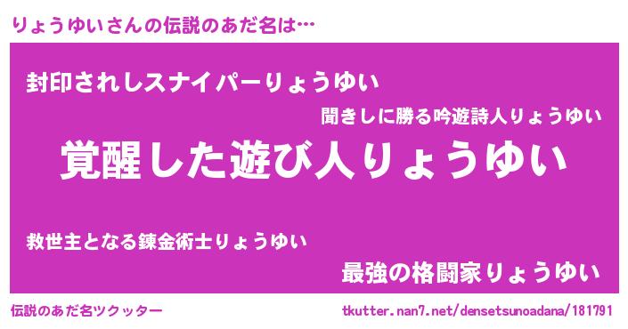 | 意味不明あだ名 | 『とにかく怪しいりょうゆい』 |