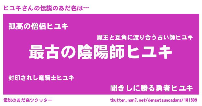 | ファンタジー風あだ名 | 『エターナルヒユキー』『ヒユディッシュ』 |