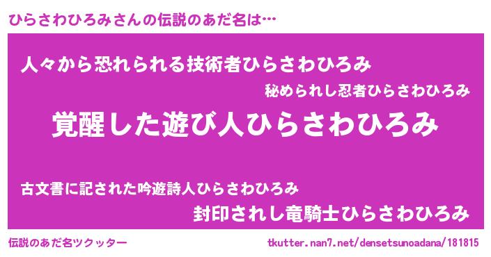 | 男性向けラノベタイトル風あだ名 | 『ひらさわひろみに滅ぼされるだけの簡単なお仕事です』 |
