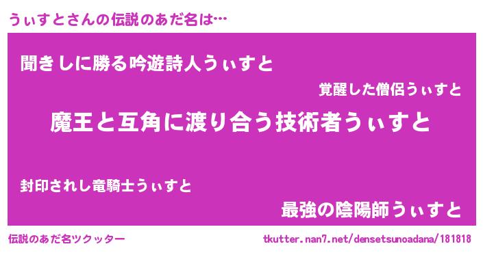 | 男性向けラノベタイトル風あだ名 | 『魔法科高校のうぃすと』 |