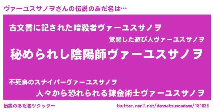 | ヒーロー風カッコイイあだ名 | 『仮面ヴァダー』『ネオヴァーユスサノヲ』 |