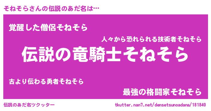 | 男性向けラノベタイトル風あだ名 | 『緋弾のソネソラ』『魔弾の王とそねそら』 |