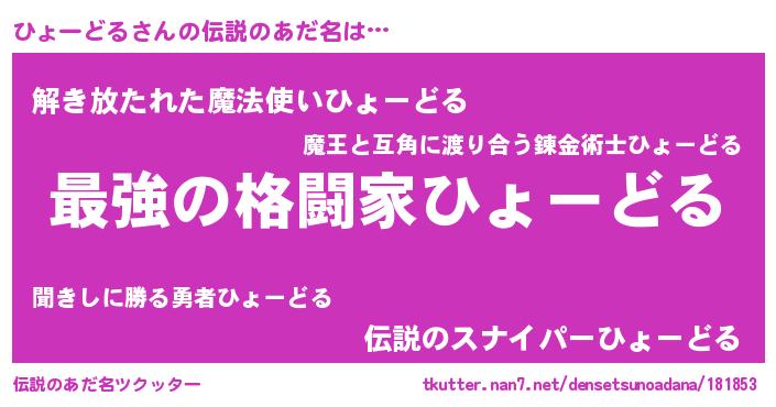 | ヒーロー風カッコイイあだ名 | 『ウルトラひょーどるマン』 |