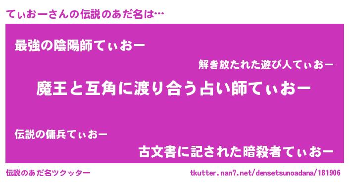 | ヒーロー風カッコイイあだ名 | 『友情の使者てぃおー』『仮面ティダー』 |