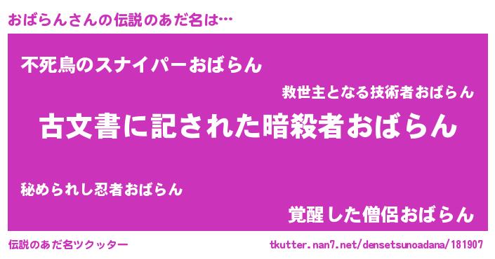 | 意味不明あだ名 | 『自称おばらん』『永久保存おばらん』 |