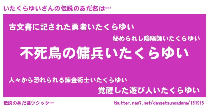 | 意味不明あだ名 | 『住所不定無職いたくらゆい(68歳)』 |