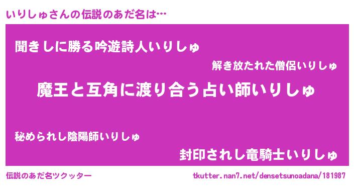 | ヘコむあだ名 | 『いりしゅ(笑)』『いりにー』『豆乳』 |