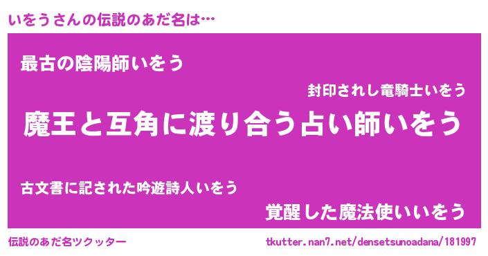 | ヒーロー風カッコイイあだ名 | 『愛の使者いをう』『ウルトラいをうマン』 |