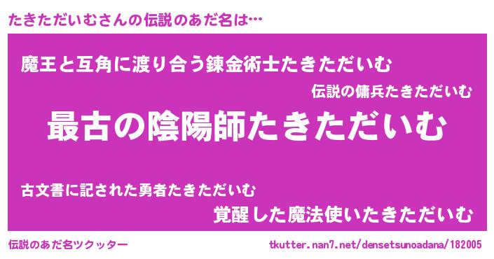| 男性向けラノベタイトル風あだ名 | 『はたらくたきただいむさま!』 |