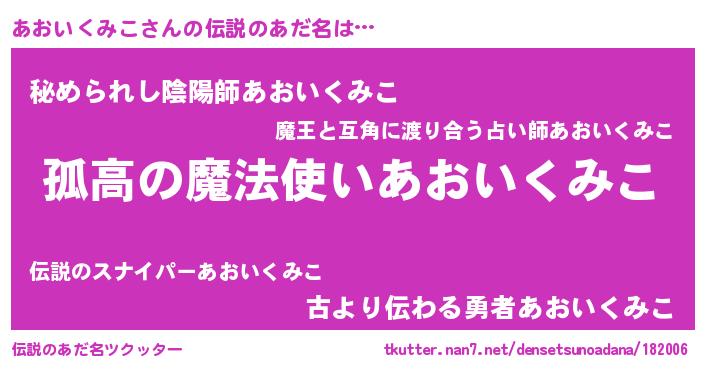 | 意味不明あだ名 | 『とにかく怪しいあおいくみこ』 |