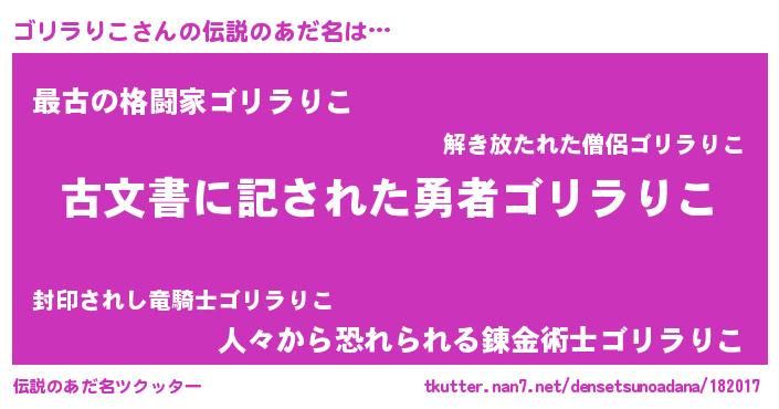 | 男性向けラノベタイトル風あだ名 | 『誰もが恐れるあのゴリラりこが、ぼくの専属メイドになるようです。』 |
