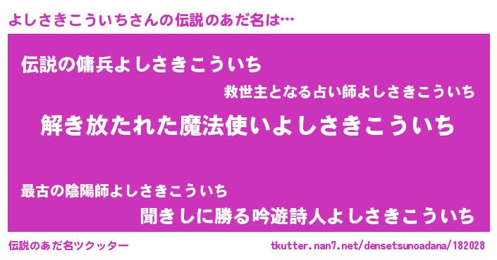 | 意味不明あだ名 | 『とにかく怪しいよしさきこういち』 |