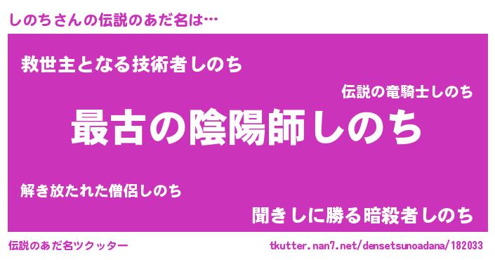 | 意味不明あだ名 | 『自称しのち』『しのちフォーエバー』 |