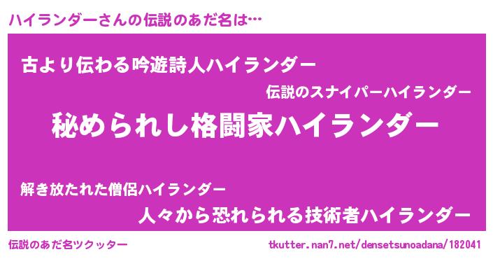 | ヒーロー風カッコイイあだ名 | 『ウルトラ戦士ハイランダー』 |
