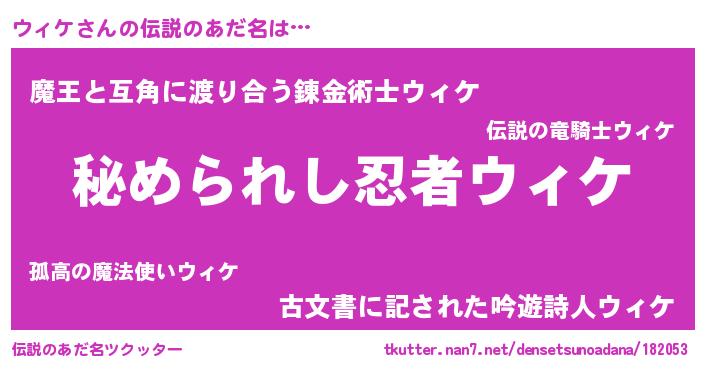 | 意味不明あだ名 | 『自称ウィケ』『ウィケフォーエバー』 |
