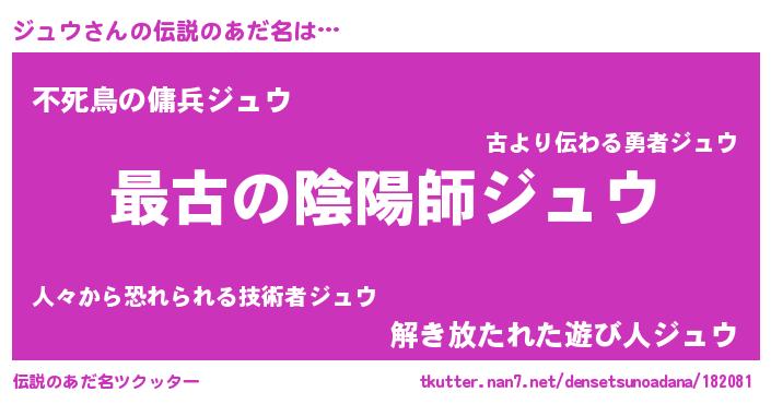 | 意味不明あだ名 | 『自称ジュウ』『ジュウフォーエバー』 |