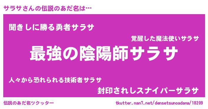 | ヒーロー風カッコイイあだ名 | 『ウルトラサラサマン』『究極戦士サラサ』 |
