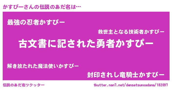 | 意味不明あだ名 | 『自称かすぴー』『永久保存かすぴー』 |
