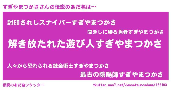 | 男性向けラノベタイトル風あだ名 | 『ダンジョンにすぎやまつかさを求めるのは間違っているだろうか』 |