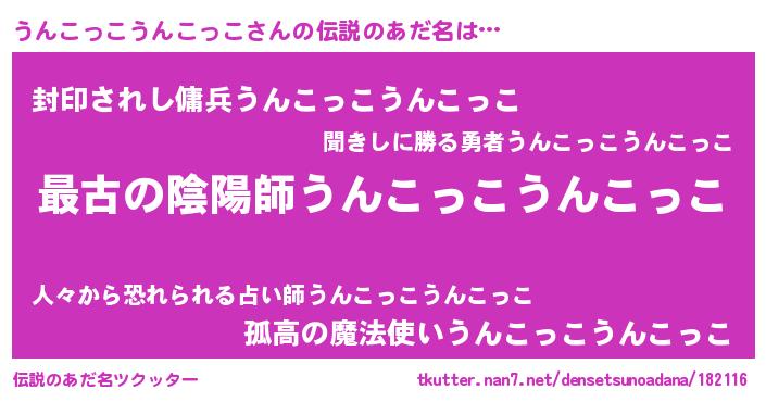 | ファンタジー風あだ名 | 『エターナルウンコッコウンコッコー』 |
