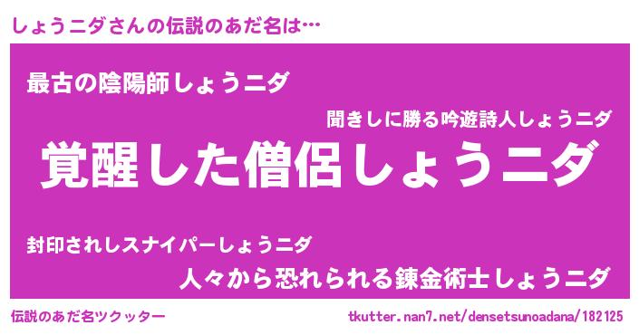 | 男性向けラノベタイトル風あだ名 | 『しょうニダの嫁は女の子じゃないと思った?』 |