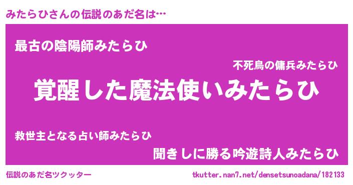 | ヒーロー風カッコイイあだ名 | 『炎刃騎士ミタ』『ウルトラみたらひマン』 |
