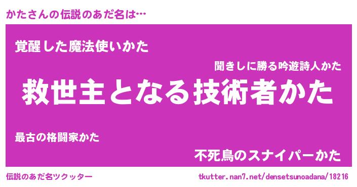| 女子向けラノベタイトル風あだ名 | 『死神かたの再婚』『かた様がみてる』 |