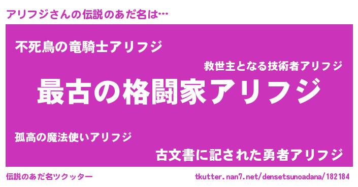 | 意味不明あだ名 | 『アリフジフォーエバー』『自称アリフジ』 |