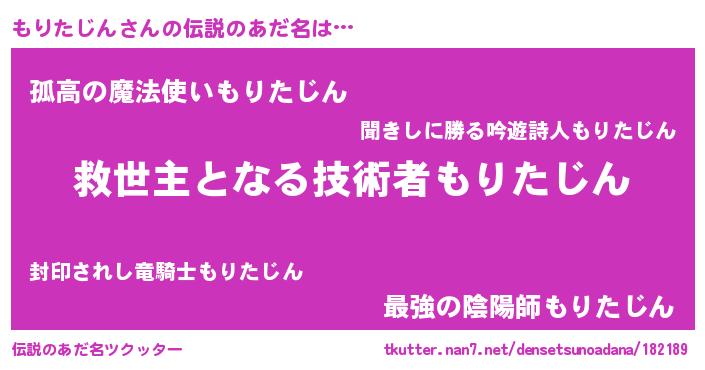 | 肩書あだ名 | 『もりたじん助教授』『もりたじん中将』 |