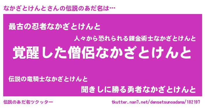 | 男性向けラノベタイトル風あだ名 | 『なかざとけんとに滅ぼされるだけの簡単なお仕事です』 |