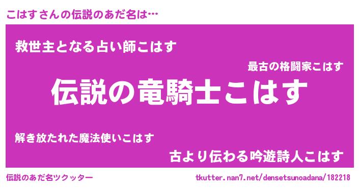 | ヒーロー風カッコイイあだ名 | 『スーパーコハス』『天空の使者こはす』 |