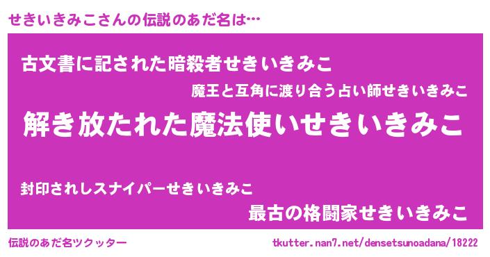 | 女子向けラノベタイトル風あだ名 | 『せきいきみこの卵を拾いまして』 |