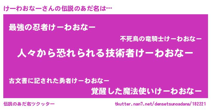 | ヒーロー風カッコイイあだ名 | 『友情の使者けーわおなー』 |