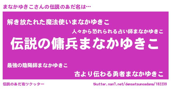 | 意味不明あだ名 | 『住所不定無職まなかゆきこ(47歳)』 |