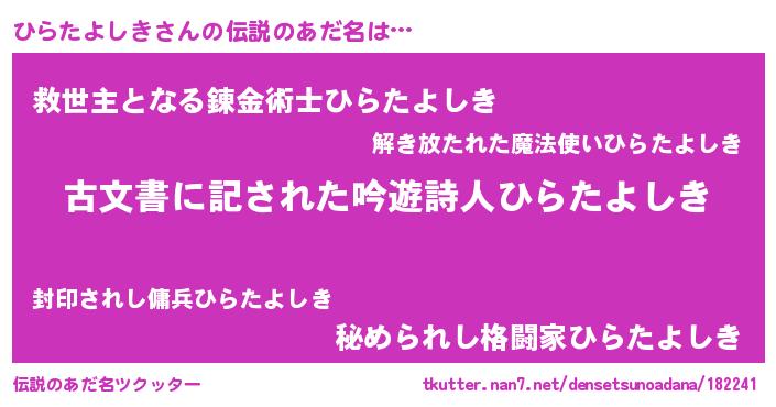 | 意味不明あだ名 | 『永久保存ひらたよしき』 |