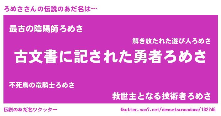 | ファンタジー風あだ名 | 『ロメディッシュ』『エターナルロメサー』 |