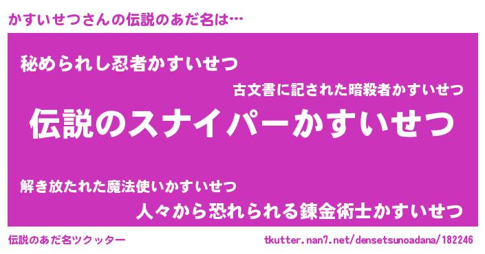 | 男性向けラノベタイトル風あだ名 | 『かすいせつの憂鬱』 |