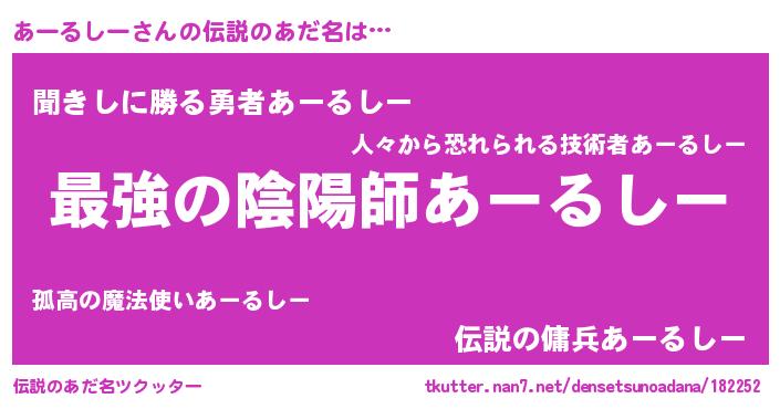 | ファンタジー風あだ名 | 『エターナルアールシーー』『ゼアートゥ』 |
