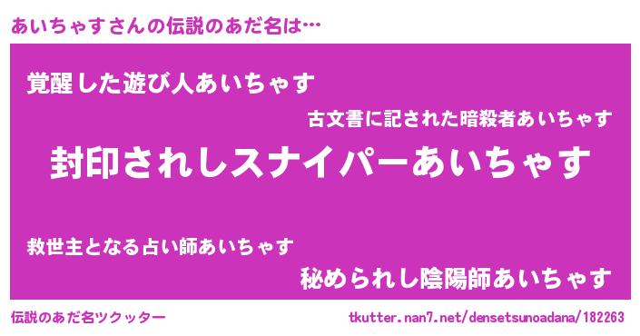 | ヒーロー風カッコイイあだ名 | 『究極戦士アイチャス』『暗黒騎士アイ』 |
