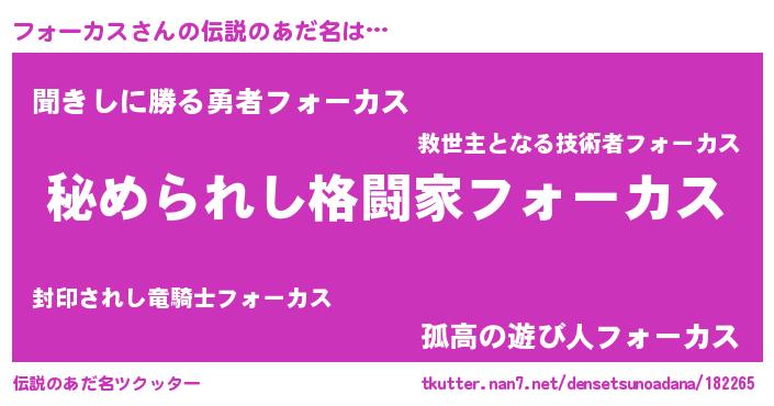 | 意味不明あだ名 | 『住所不定無職フォーカス(9歳)』 |